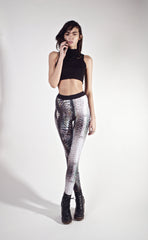 High-waisted Lycra stretch leggings in Bjork print from the AELLAI collection with thick black elastic waist-band.