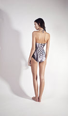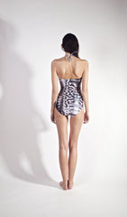 A dramatic bold Mackerel skin print. Iridescent silvers blues teals with Totemic influence.